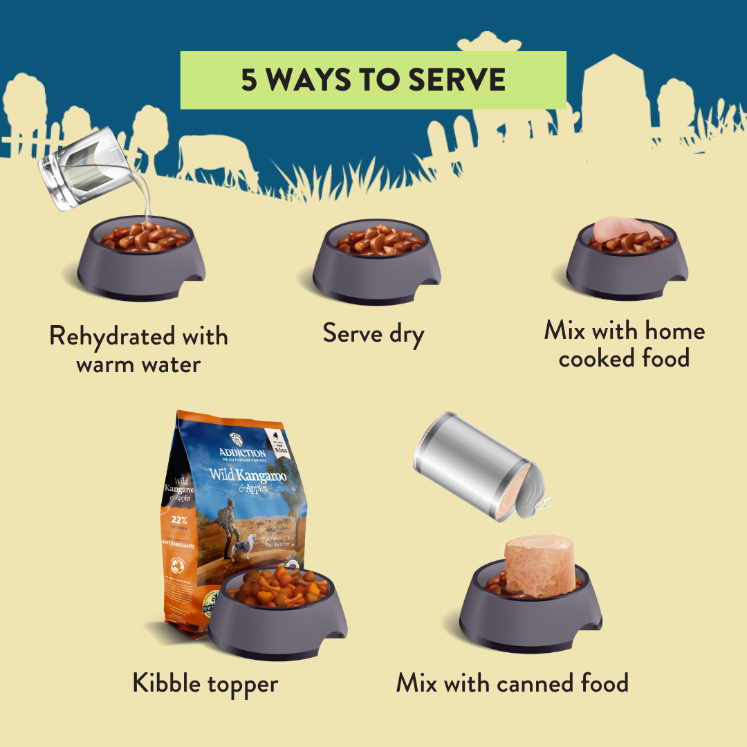 • Versatile Feeding: Serve as a complete meal, rehydrate for a softer texture, or use as a topper for added nutrition and taste.