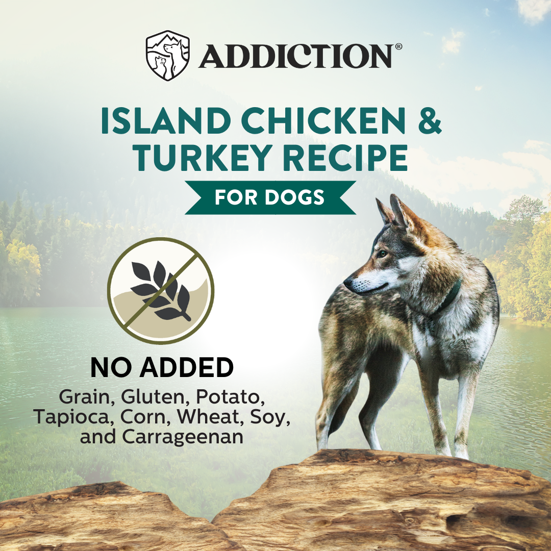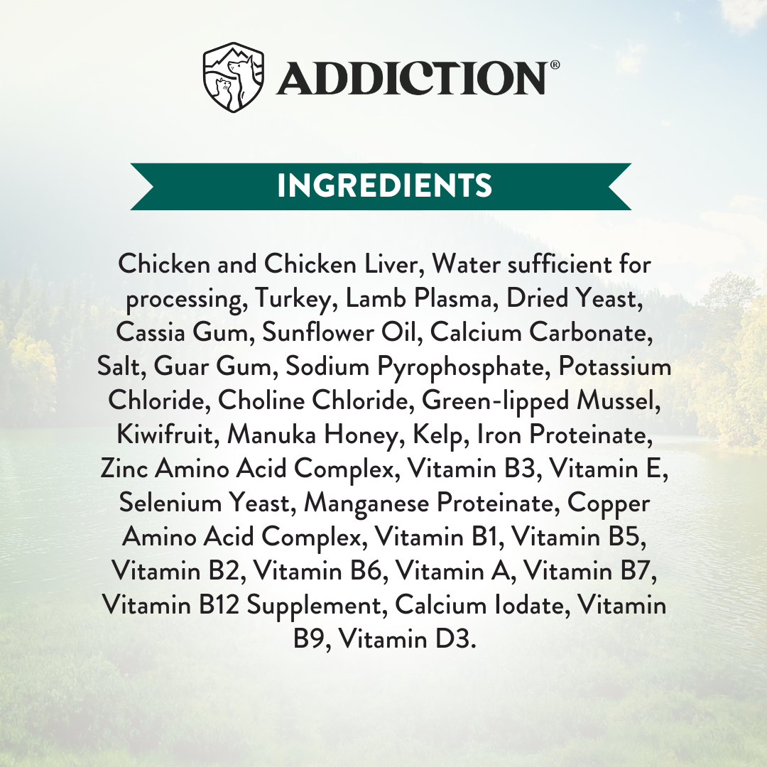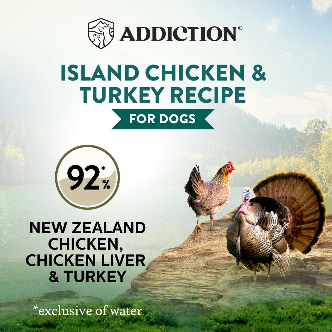 Give your dog the nourishment of the wild with Addiction Wild Islands Island Chicken & Turkey Grain-Free Dog Wet Food. Made with 92% animal ingredients including New Zealand chicken, chicken liver, and turkey, this meat-rich dog wet food mirrors the ancestral diet dogs naturally crave. Packed with natural superfoods like green-lipped mussel, Manuka honey, and kiwifruit, this recipe supports immunity, digestion, and overall wellbeing. With no grains, gluten, or fillers, it’s a clean and wholesome option that suits dogs of all breeds and life stages.
