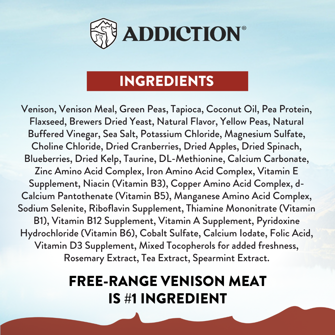 Allergen-Free Formula: Viva La Venison is crafted without common allergens such as chicken or poultry by-products, wheat, potatoes, corn, soy, and gluten. This helps reduce the risk of triggering sensitivities or allergies.