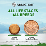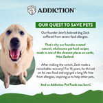 As with all new foods, gradually introduce Addiction over 7 days to prevent stomach upsets. Feed 25% Addiction and 75% of the old food for first 2 days and gradually increase proportion of Addiction over the next 5 days. By the 7th day, you can be confident feeding Addiction for your pet's full meal. It is critical that Addiction is slowly introduced to your pet over the 7-day period. Not following these guidelines may result in your pet experiencing gastrointestinal discomfort or related symptoms.