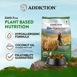 Addiction Zen Vegetarian Dry Dog Food is a vegan formula designed by a holistic veterinarian and clinical nutritionist. It's made with plant-based ingredients and vegetables to provide a nutritious and allergy-friendly diet for dogs.
