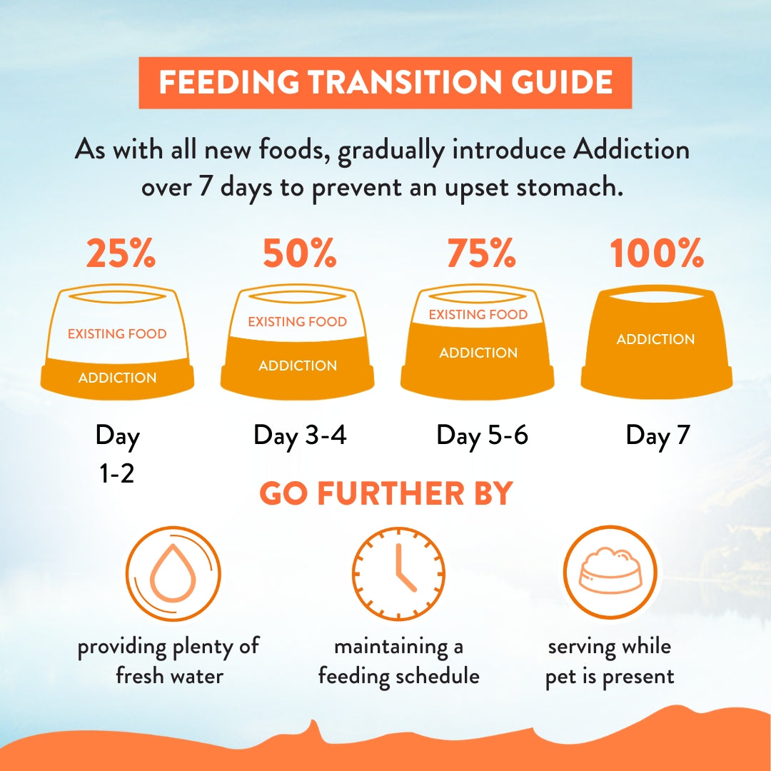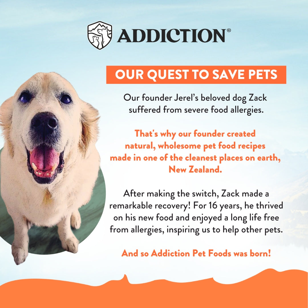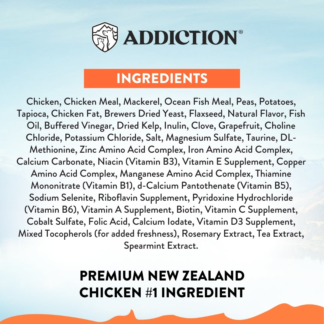 Give your kitten the best start in life with Addiction's Chicken Supreme Recipe for Kittens, a premium, meat-first formula crafted in New Zealand. Specially designed for kittens up to 12 months, this high-protein, grain-free recipe features New Zealand chicken as the #1 ingredient, complemented by mackerel, ocean fish meal, and nutrient-rich superfoods. Enriched with omega fatty acids, prebiotics, and chelated minerals, it supports healthy growth, strong immunity, and a shiny coat—naturally and deliciously.