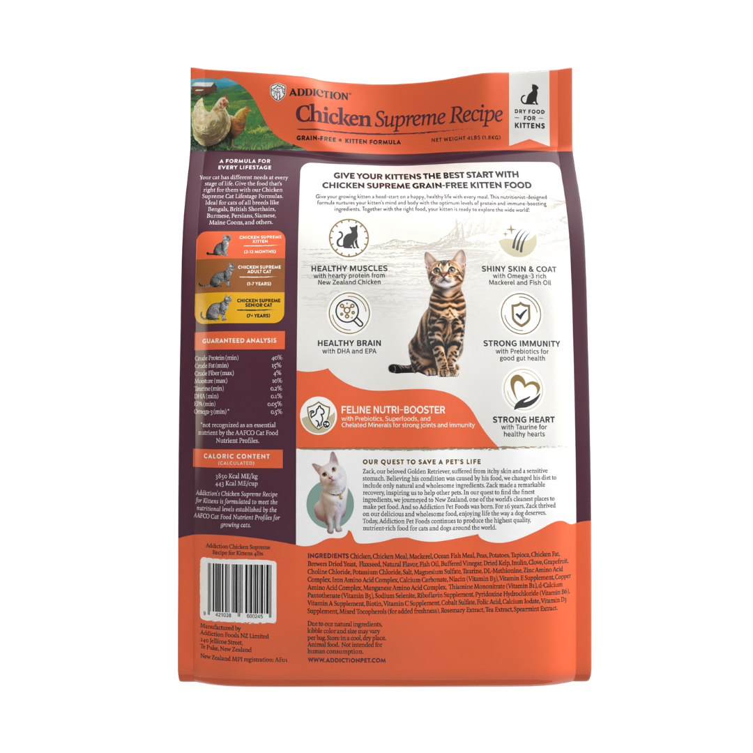 • New Zealand Chicken as #1 Ingredient: Nourish your kitten's hearty appetite with New Zealand chicken, high in essential nutrients and easy to digest.