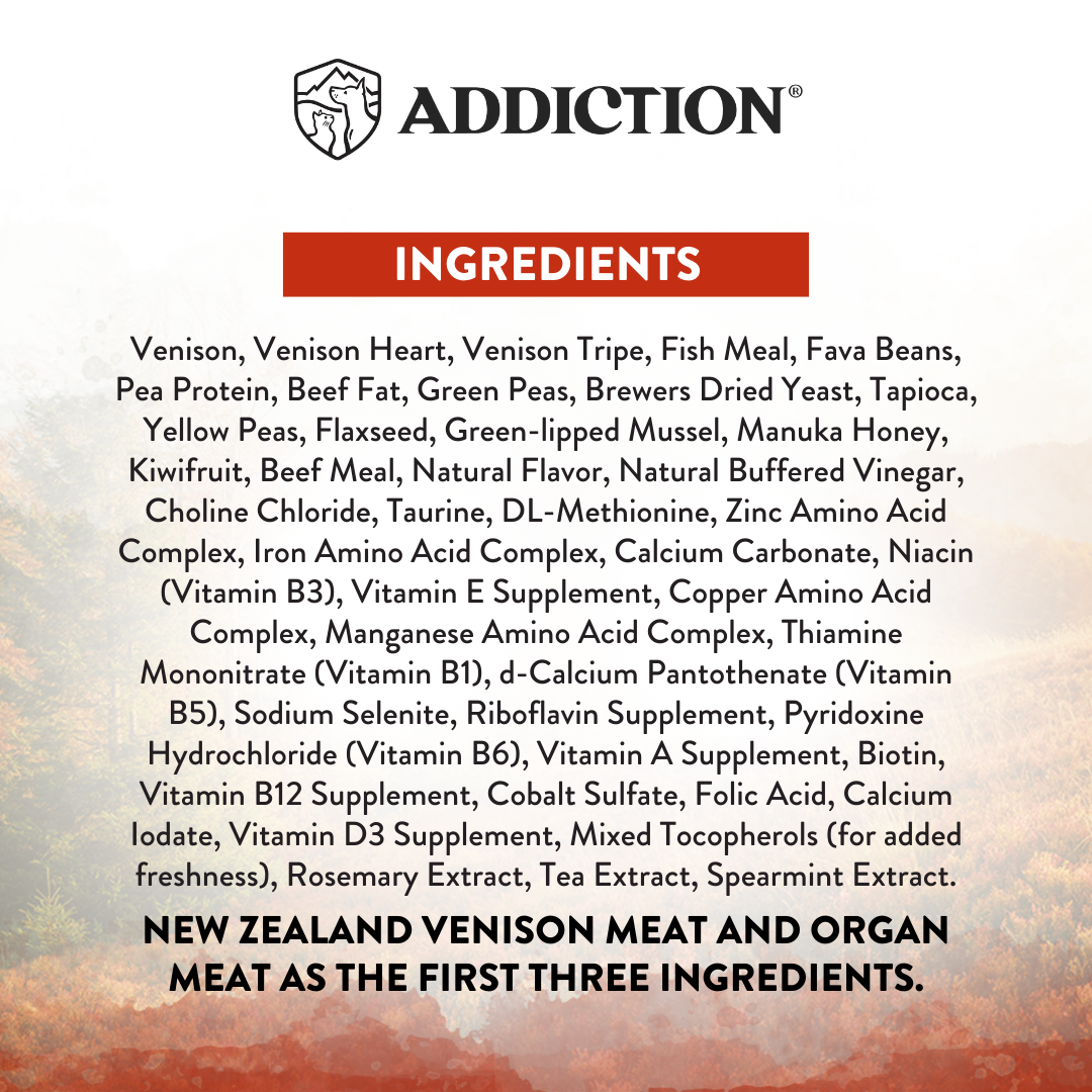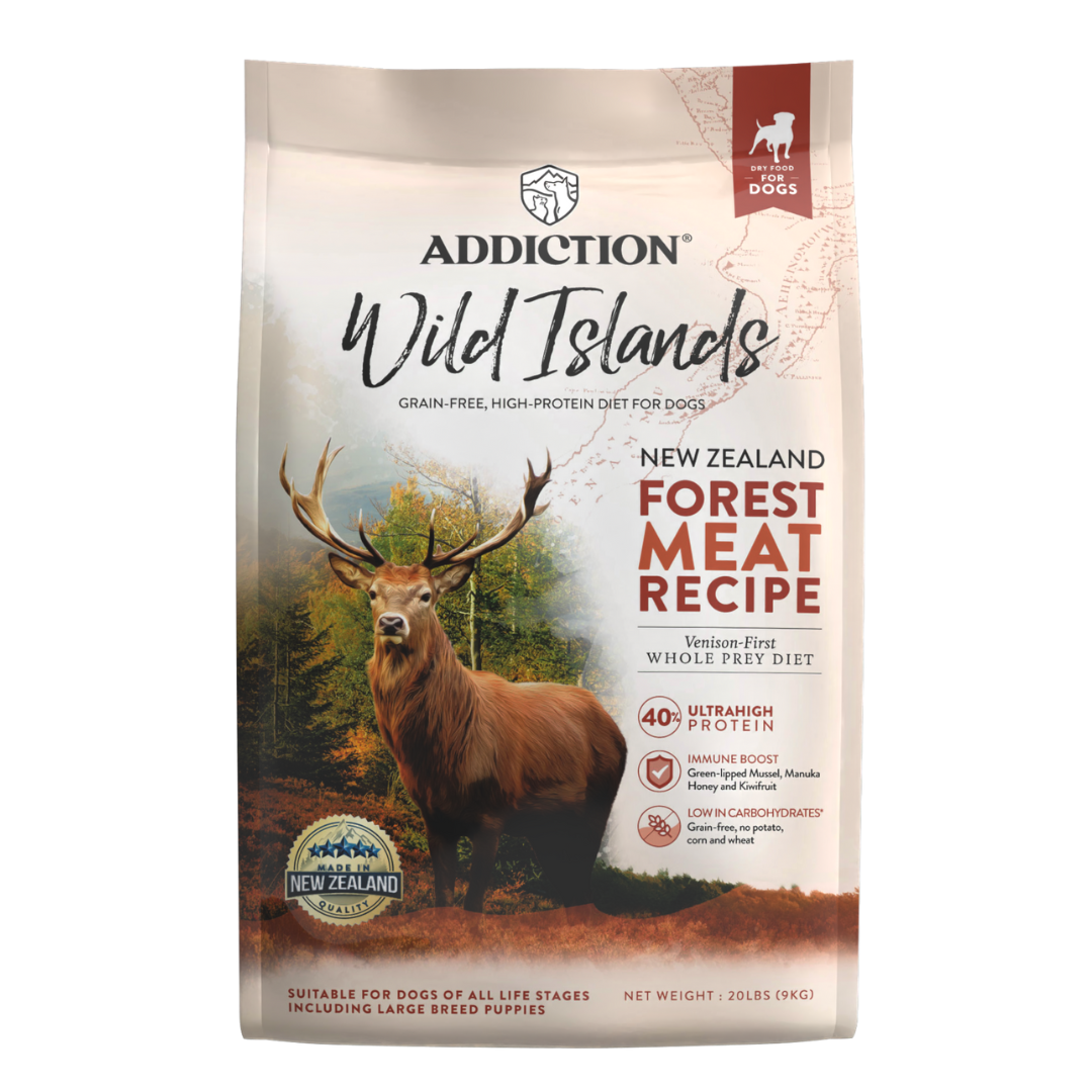 Unleash your dog’s wild side with Addiction Wild Islands Forest Meat Recipe Dry Dog Food — a high-protein formula with 40% protein content inspired by the ancestral diet of wild canines. Crafted with free-range New Zealand venison, nutrient-rich organ meats, and superfoods like Green-lipped Mussel and Manuka Honey, it delivers primal nutrition to fuel lean muscle, sustained energy, and overall vitality. Air-dried to lock in natural goodness and free from grains, this premium recipe supports your dog’s well-being — naturally and deliciously.