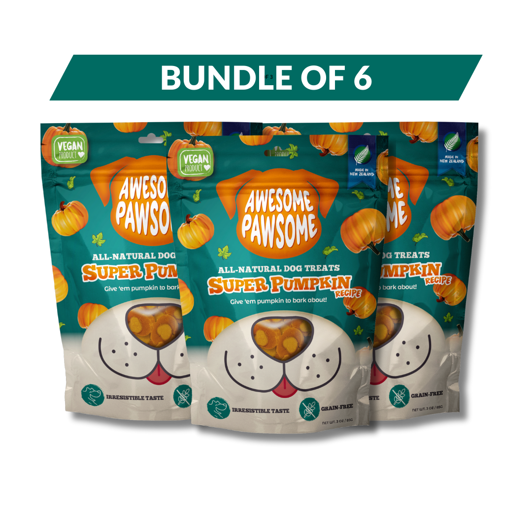 🥧 Awesome Pawsome™ Super Pumpkin is the premium vegan treat for discerning pets. Made with real pumpkin and rich in antioxidants, it is the ideal snack for pets with meat protein allergies.