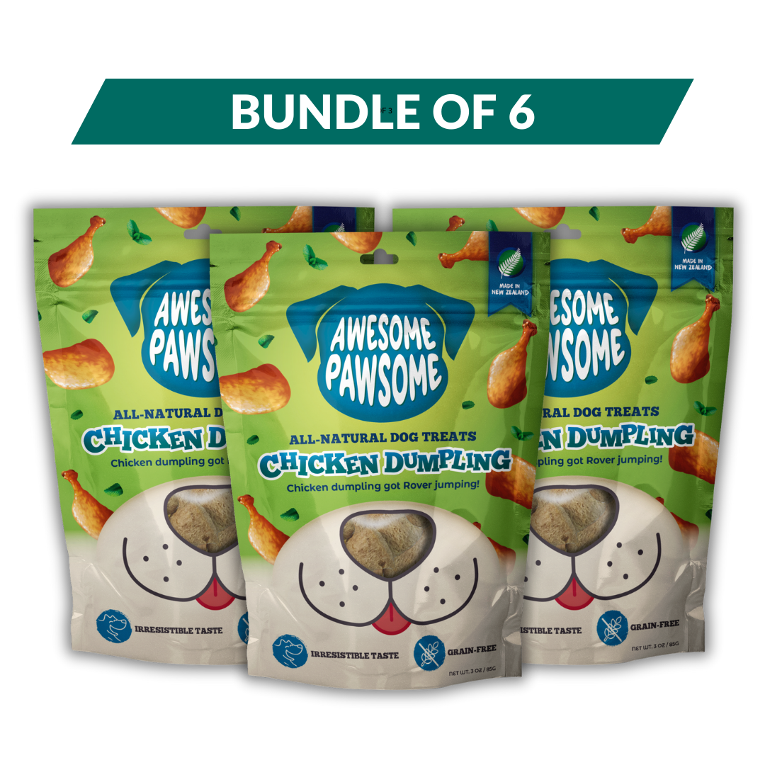 🍗 Get your buddy jumping over Awesome Pawsome™ Chicken Dumpling, made with cage-free New Zealand chicken. With natural antioxidants and a mix of tasty herbs, Chicken Dumpling is the yummy treat that awesome dogs snack on.
