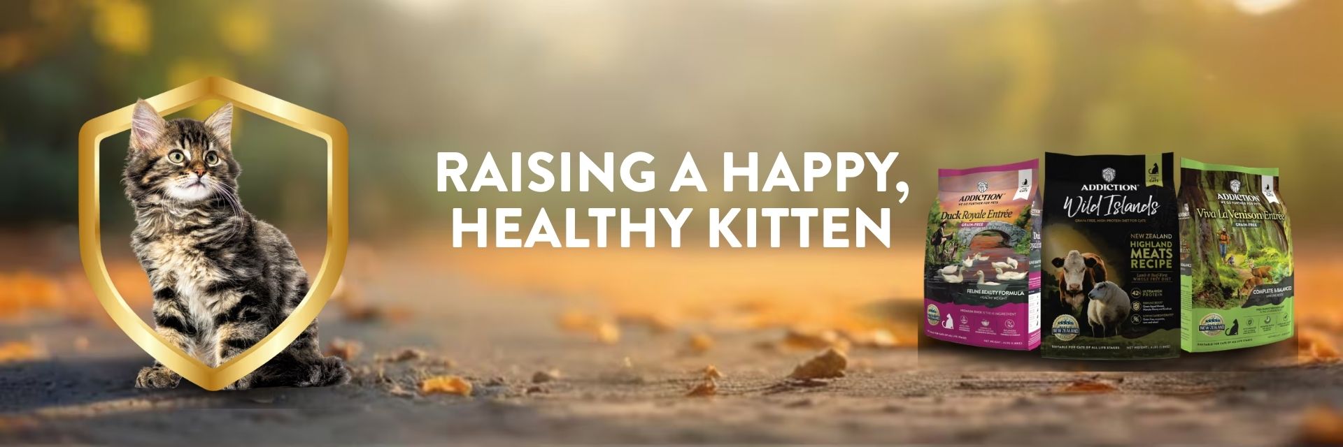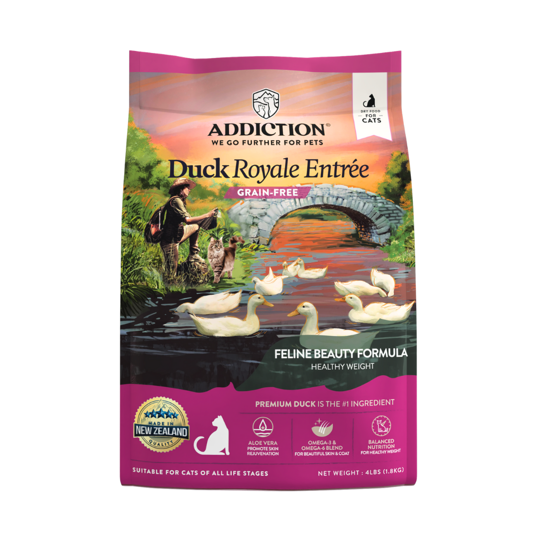 Feed a high-quality kitten food with protein, DHA, calcium, and taurine. Try Addiction’s Viva La Venison or Salmon Bleu for optimal growth.